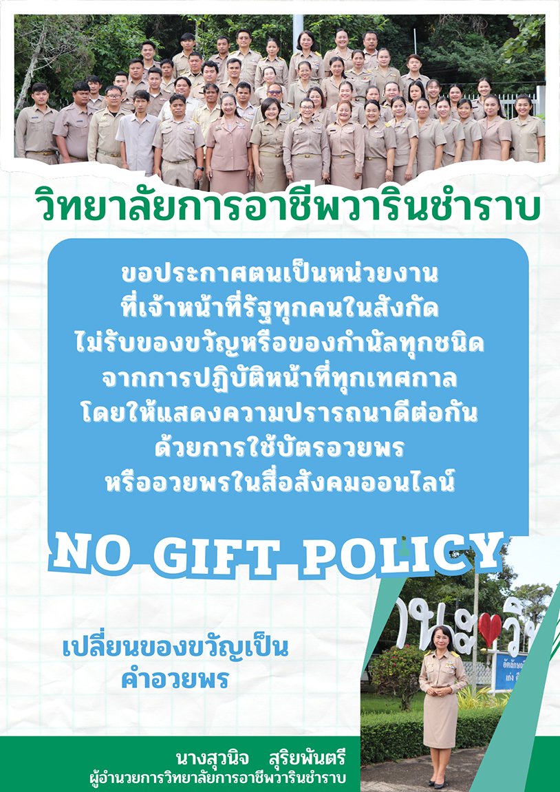 ประกาศนโยบายไม่รับของขวัญวิทยาลัยการอาชีพวารินชำราบ